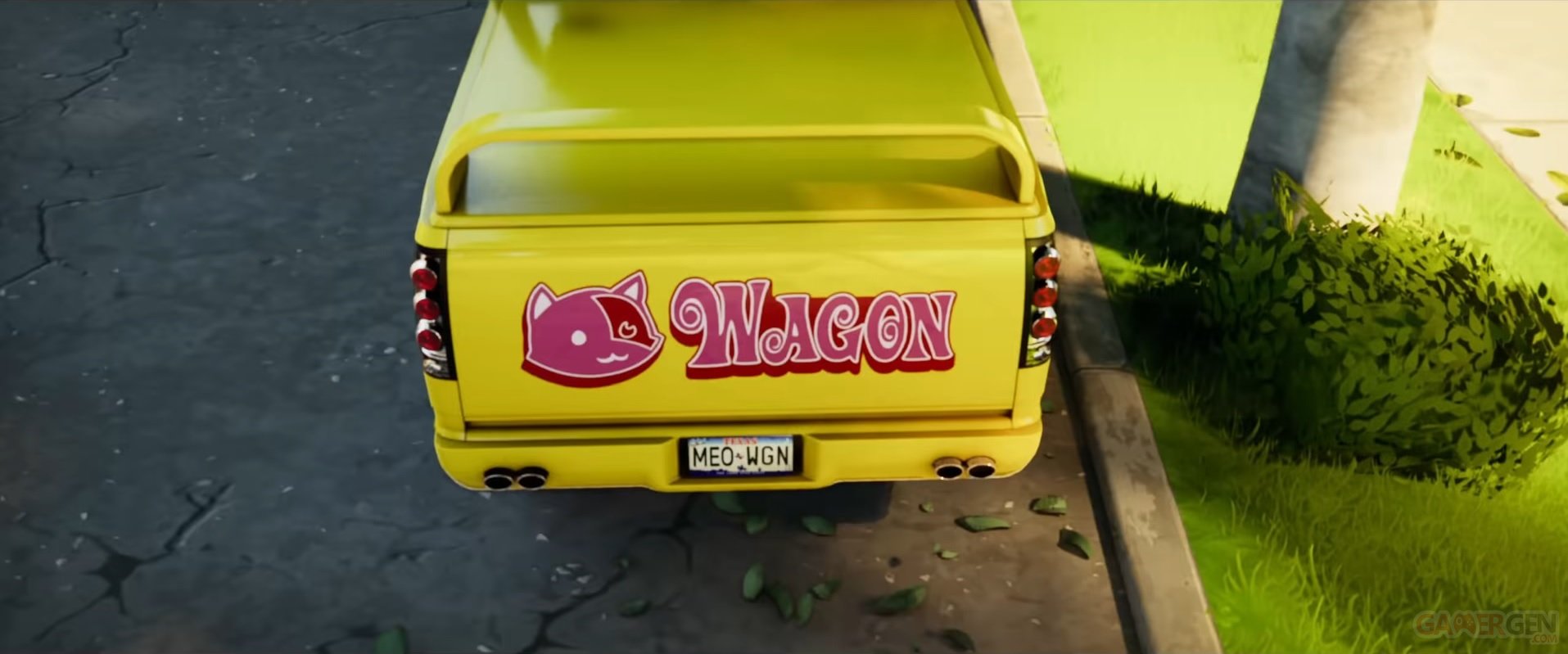 Dans la bande-annonce ci-dessus, diffusée le 7 novembre dernier, Lionsgate a caché une référence quasi imperceptible au jeu d'Epic Games liée à la collaboration entre les deux univers. À 1:22, nous pouvons y voir l'arrière d'une Chevrolet Silverado jaune bien connue, le Pussy Wagon conduit par Beatrix Kiddo, à la différence près que c'est la tête de Miaousclé qui remplace le premier terme, pour des raisons évidentes auprès des plus jeunes puisqu'il devrait finir en jeu.