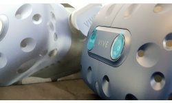 C'est du côté des contrôleurs que le changement est le plus notable avec, pour la première fois, l'apparition d'un joystick sur ceux-ci. HTC a donc pris acte de ce qui fait la force des Oculus Touch, et des WMR dans une certaine mesure, qui permettent de jouer à des FPS de façon naturelle, comme avec une manette standard. De plus, au lieu des LED posées comme sur un arbre de Noël équipant les contrôleurs Windows, HTC a ici donné à son système lumineux un look très moderne avec un design fort réussi. Côté ergonomie, cela semble plutôt bon, mais devant l'impossibilité de toucher (à peine avons-nous posé un doigt sur ces derniers pour essayer de changer l'angle pour une photo que nous avons été stoppés net par un membre de l'équipe HTC), nous pouvons uniquement dire que la forme (proche de celle du Samsung Odyssey +) et la présence du joystick devraient permettre une bien meilleure intuition dans la façon d'interagir dans la réalité virtuelle.