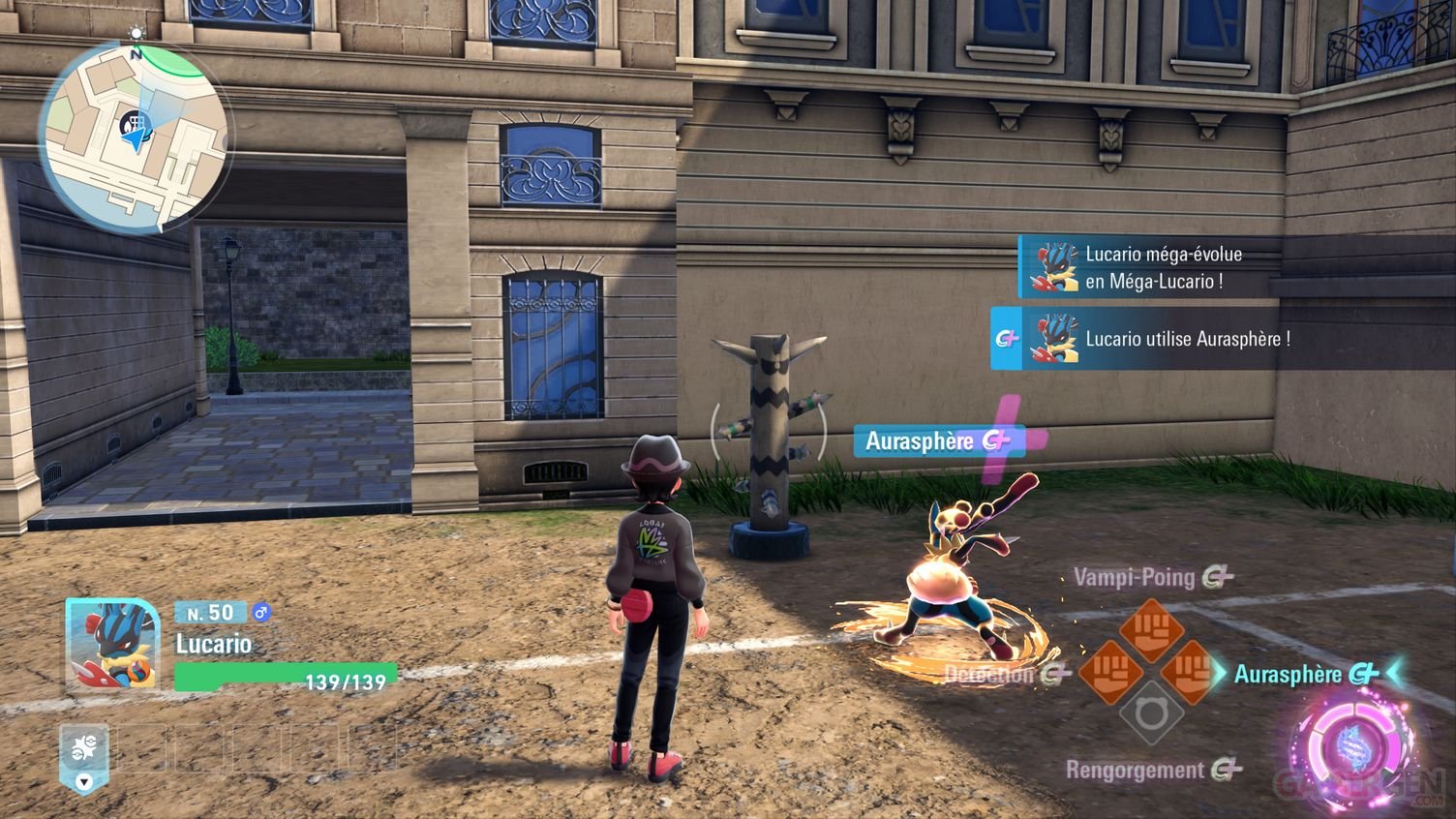 Les Méga-Évolution Z comme Méga-Lucario Z peuvent déclencher leurs capacités plus rapidement après en avoir reçu l'ordre. En contrepartie, elles consomment plus de Méga-Force et ne sont donc pas adaptées aux combats de longue durée. Faites en sorte d'en finir le plus rapidement possible !