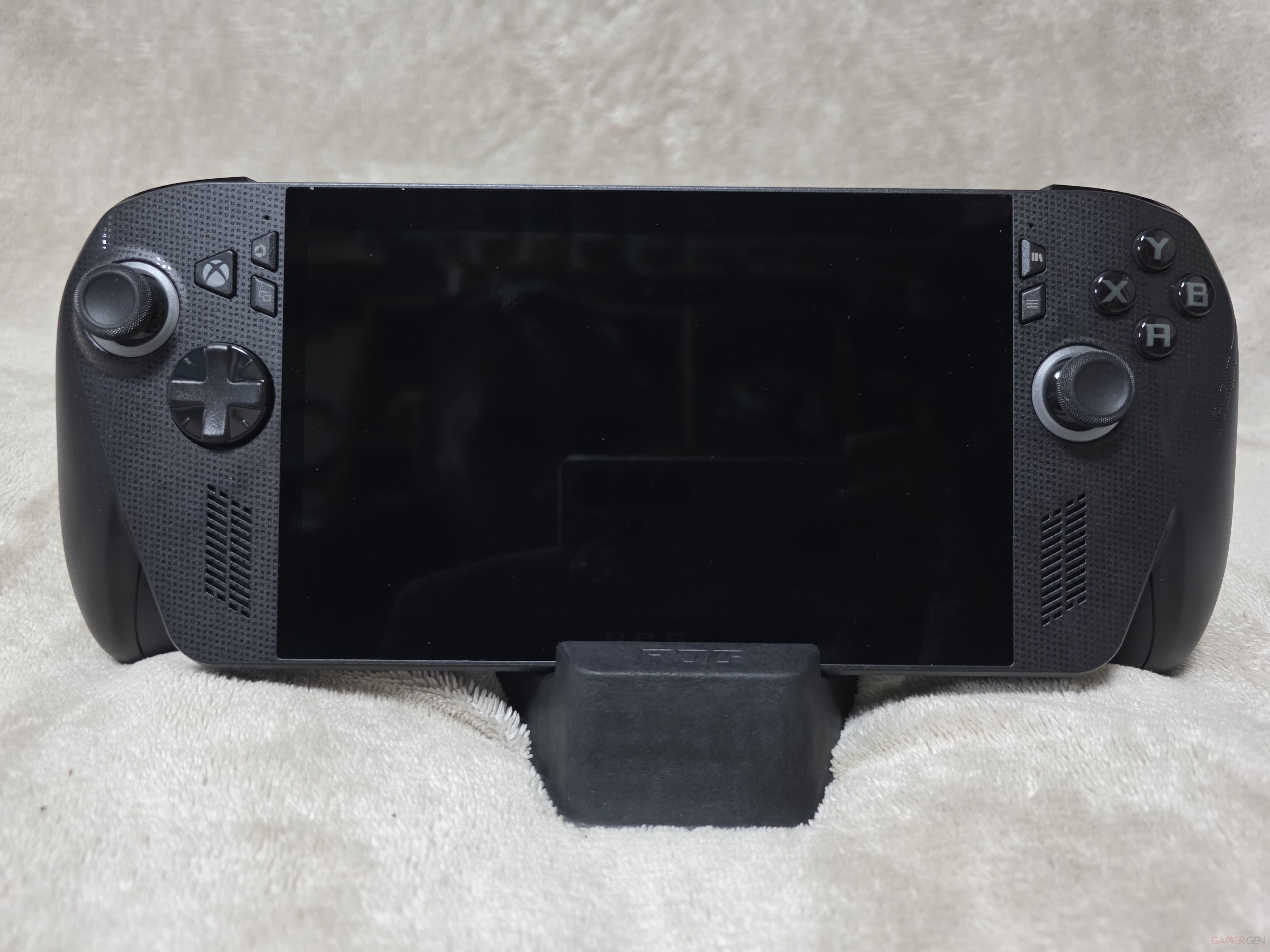 Heureusement, tout rentre dans l’ordre dès qu’on dégage la machine de son écrin. Les lignes sont plus douces que sur la ROG Ally classique, les poignées mieux dessinées, et cette livrée noire aux reflets mats a quelque chose d’élégant et de puissant à la fois. Les sticks semblent plus fermes, les boutons mieux équilibrés... Bref, la bête a du répondant. Dommage tout de même qu’un chargeur digne de ce nom ne soit pas inclus dans la boîte ; à ce prix-là, nous aurions aimé éviter de recycler celui de notre smartphone. Mais qu’importe, la ROG Xbox Ally X reste un petit bijou à regarder, à toucher, et bientôt, à malmener en jeu.