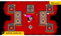 Tout comme le premier volet, différents styles sont exhibés à l'image. Ainsi, nos mirettes se posent sur du Super Mario Bros. et Super Mario Bros. 3, pixels en 8-bits, Super Mario World, titre emblématique de la Super Nintendo, New Super Mario Bros. U et Super Mario 3D World, tirés tous deux de la Wii U. Premier constat, c'est super propre, le rendu est superbe sur un écran en 16:9.