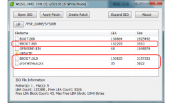 - Chargez de nouveau un ISO, faites glisser l'eboot.bin placé à la racine du dossier, ainsi que votre eboot.old.